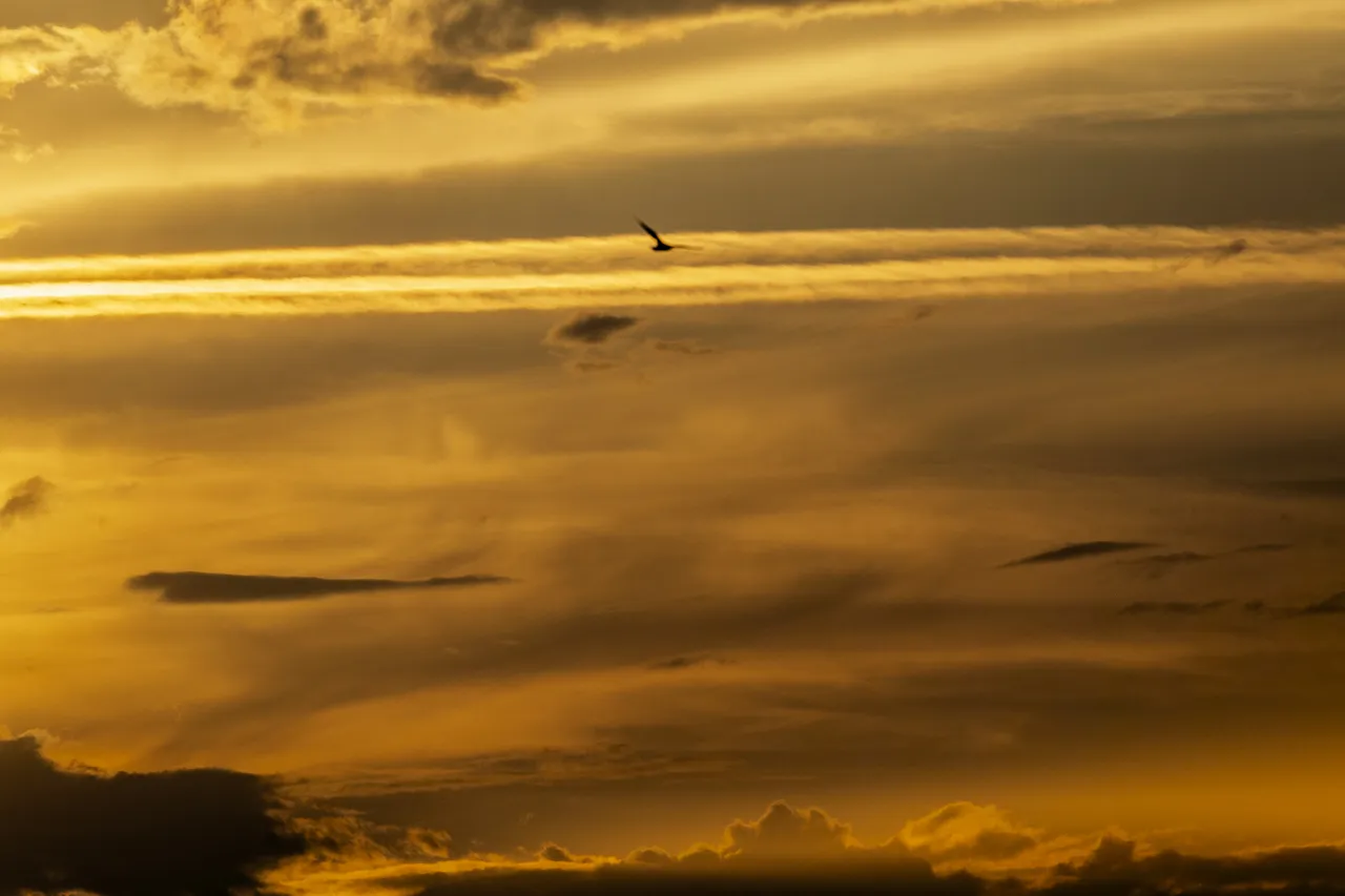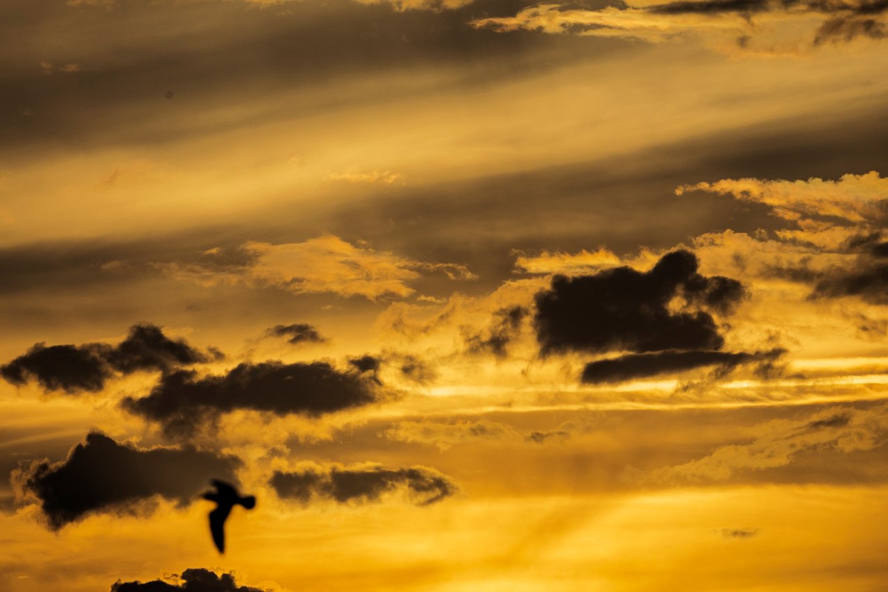 Le fameux jour de l'éclipse de lune. Lorsque je me retourne, le ciel était déchiré de trait de lumière dorés.