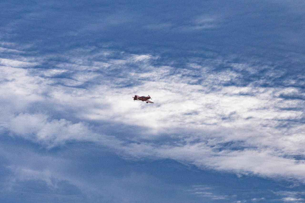 J'ai mis l'accent sur le ciel nuageux et contrasté, ou l'avion peut s'apparenter à un petit bateau dans l'océan.